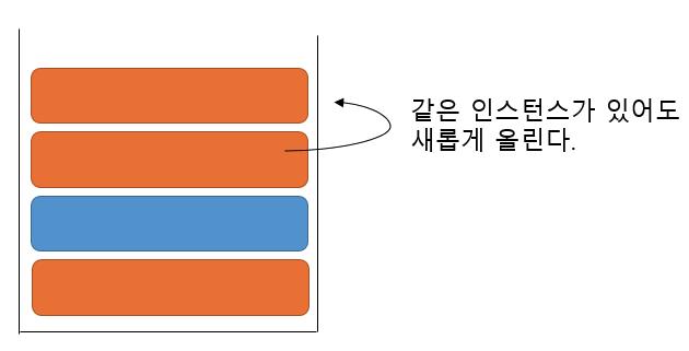스택 상단에 있지만 해당 작업에는 없는 경우, 새 인스턴스가 생성되고 스택에 푸시됩니다.