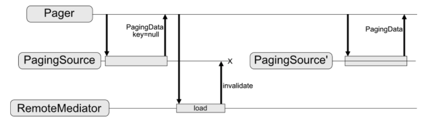 마지막으로 PagingSource는 자신을 직접 무효화하며 Pager는 새 인스턴스를 생성하여 데이터베이스에서 새 데이터를 로드합니다.