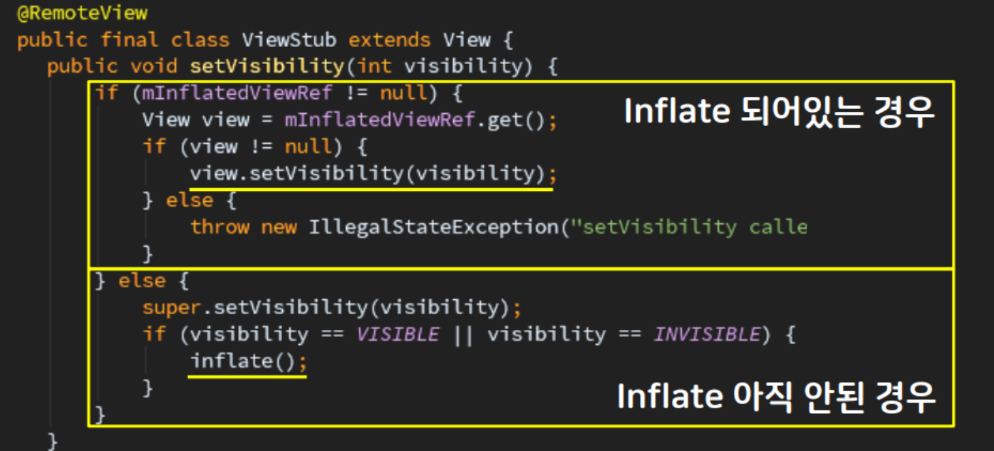 - ViewStub도 View를 상속하기 때문에 View를 파라미터로 받는 바인딩 어뎁터를 사용할수 있다.