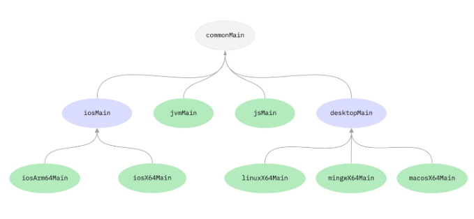 - common 코드는 HTTP(Ktor-client), 직렬화(.serialization.kotlinx) 및 코루틴 관리와 같은 일상적인 작업을 다루는 라이브러리 세트에 의존성을 가짐