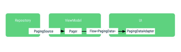 - PagingDataAdapter는 내부 PagingData 로드 이벤트를 수신 대기하고 페이지가 로드될 때 UI를 효율적으로 업데이트