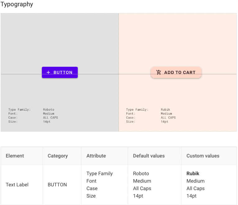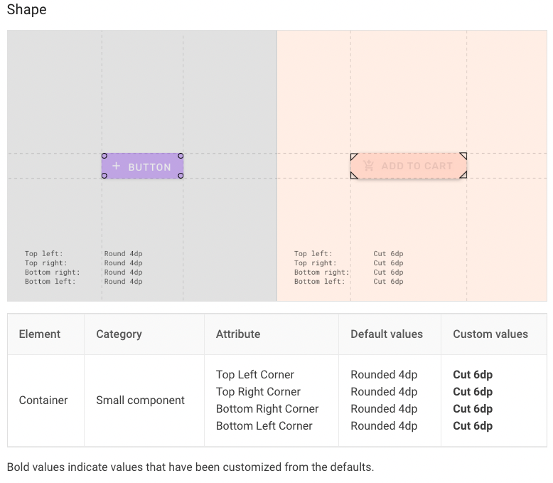 도구를 사용하면 모든 커스텀 가능한 속성에 대한 특정 값을 제공하여 디자인 워크플로와 코드 워크플로 간에 쉽게 전환할 수 있습니다. 이러한 값을 사용자 정의하면 제품에 대한 머티리얼 테마가 생성됩니다.