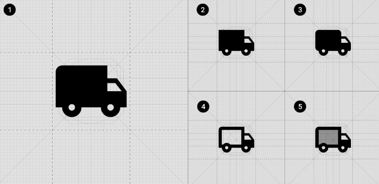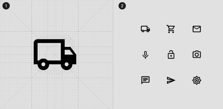Outlined 아이콘 세트는 대부분의 Filled 제거하고 대부분의 아이콘을 strokes = 2dp 으로 변환하여 시각적 무게를 줄입니다.