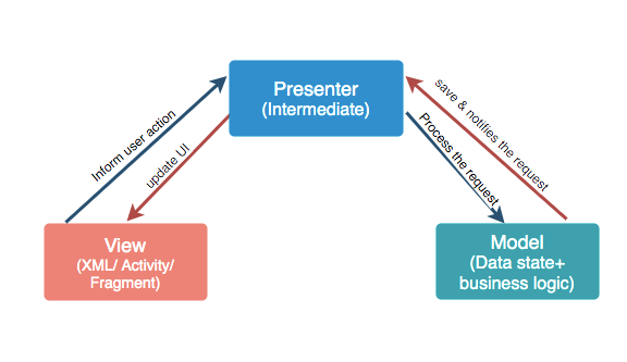 - Model과 View간의 모든 상호 작용은 Presenter가 처리합니다. 데이터를 모델에 다시 저장합니다.