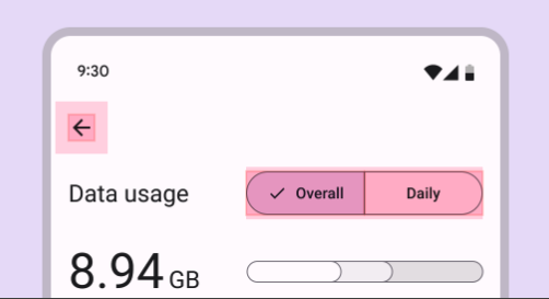 머티리얼 디자인 대상 가이드라인은 화면을 볼 수 없거나 작은 대상을 터치하는 데 어려움이 있는 사용자가 앱의 요소를 탭하는 데 도움이 될 수 있습니다.