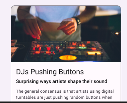 Alt text example: A DJ standing in front of music equipment at night.