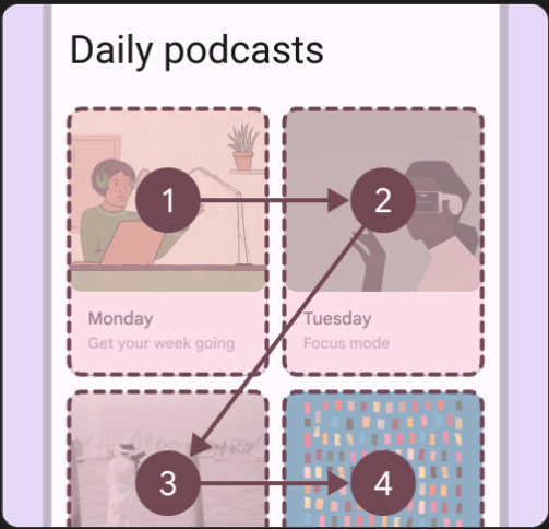 논리적 읽기 순서로 화면의 콘텐츠 hierarchy를 식별할 수 있는 방법