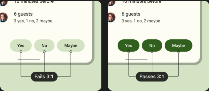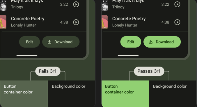 요소 간의 충분한 색상 대비는 저시력 사용자가 앱을 보고 사용하는 데 도움이 될 수 있습니다.