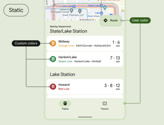 사용자 정의 색상은 Error와 같은 conventional 의미를 전달하는 방법과 유사하게, UI의 표현 색상과 함께 종종 필요한 특정 색상으로 고정되어 있다. 또한 dynamic color 환경의 가변성과 함께 팀에 더 많은 제어 및 사용자 정의를 제공하는 데 사용됩니다.