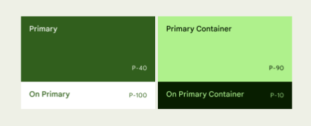 *On-primary container는 기본 컨테이너 위에 있는 콘텐츠(아이콘, 텍스트 등)에 적용됩니다.