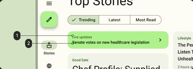 primary focus 영역은 surface 역할을 사용하고 내비게이션 영역은 표면 컨테이너 역할을 사용합니다.