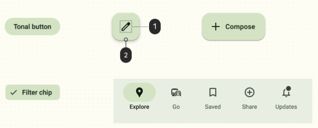 filter 칩과 같이 UI에서 덜 눈에 띄는 구성 요소에 보조 역할을 사용하면서 색상 표현의 기회를 확장합니다.