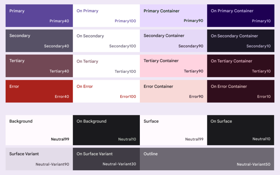 baseline color roles 을 색상 매핑의 시작점이되며, 앱에서 dynamic 색상을 사용할 수 있습니다.