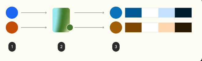 결과는 두 입력이 UI에서 성공적으로 결합될 수 있도록 원래 색상 톤에서 조화된 변형(3)입니다.