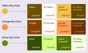 입력한 key 색상과 일치하도록 톤을 조정할 때 사용자 정의 노란색, 주황색 및 녹색 color roles