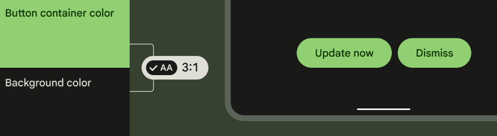 버튼 컨테이너와 같은 일부 비텍스트 요소는 표준 접근성(AA 등급)에 대해 3:1의 명암비를 충족해야 합니다.