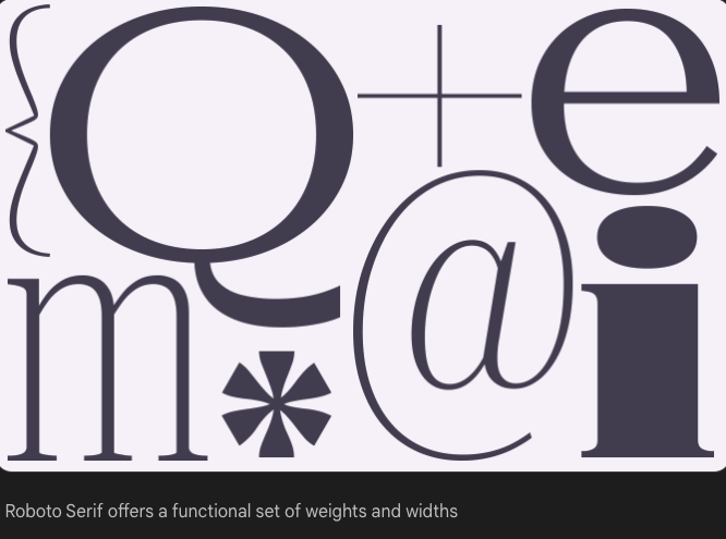 Roboto Serif는 편안한 독서 경험을 제공하도록 설계된 또 다른variable font 모음입니다.