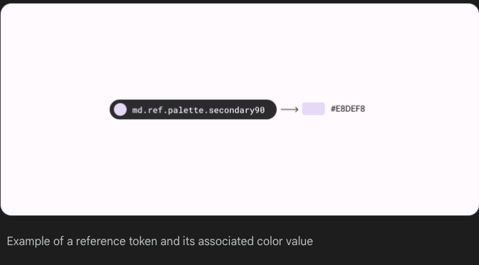머티리얼 디자인은 color, typography, elevation, and motion values.에 대한 system 및 reference 토큰을 제공합니다.