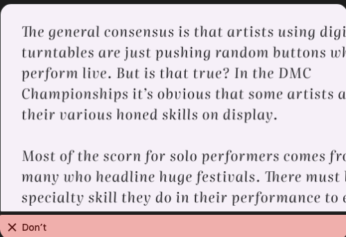 Weight와 Grade 축 모두 문자의 두께에 영향을 주지만 Grade을 사용한 조정은 훨씬 더 세분화되며 문자 widths나 줄바꿈을 변경하지 않습니다.