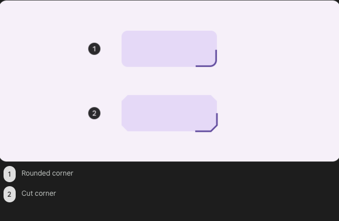 예를 들어, 카드의 a large cut corner는 같은 크기의 rounded corner보다 콘텐츠 영역을 더 많이 침범하여 잠재적으로 콘텐츠 레이아웃이나 이미지 클리핑에 영향을 미칩니다.