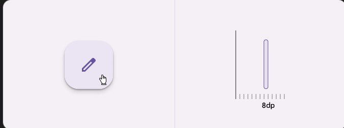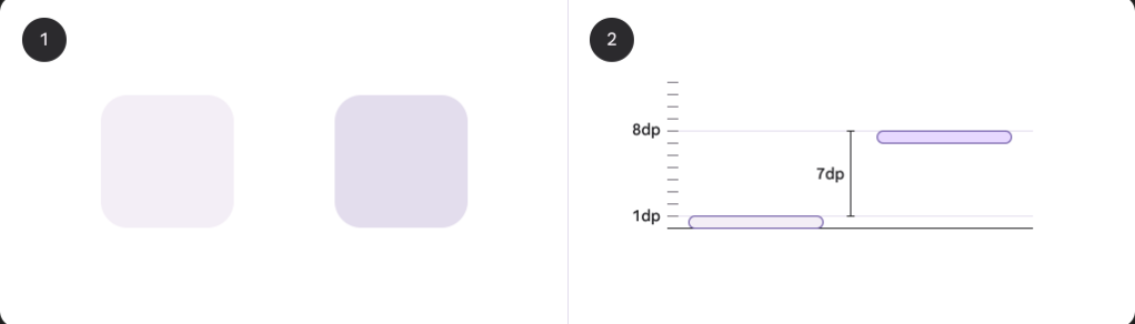 1. 정면에서 보았을 때 1dp elevation의 표면과 8dp elevation의 표면