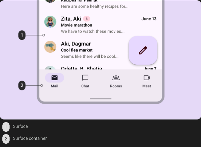 다양한 surface 및 surface container 색상 역할 중에서 선택할 수 있습니다.