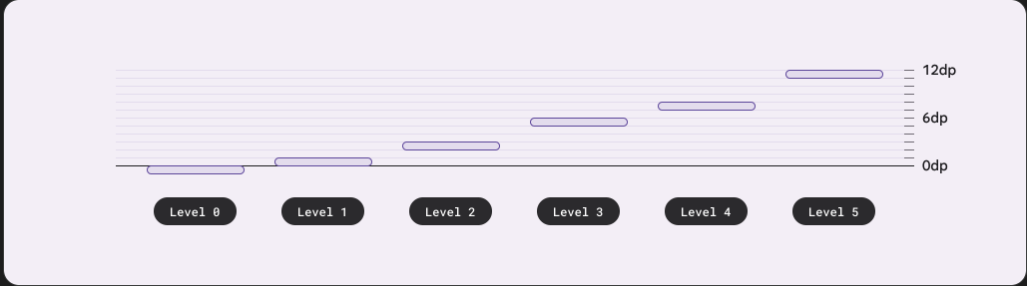Material 3의 elevation System은 의도적으로 소수의 level로 제한됩니다.