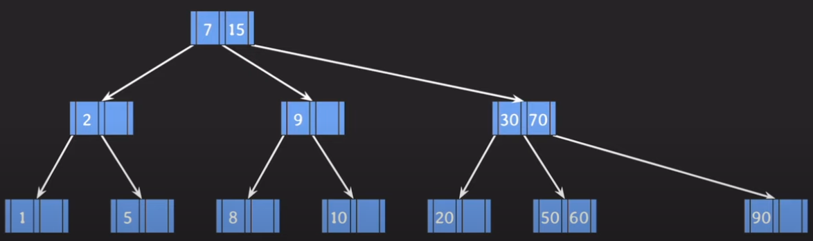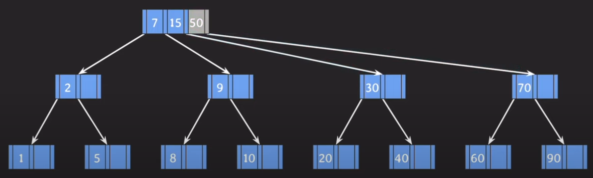 * internal node(leaf node가 아닌 노드)라면 key의 개수가 x개 라면 자식의 노드의 수는 x + 1이다.