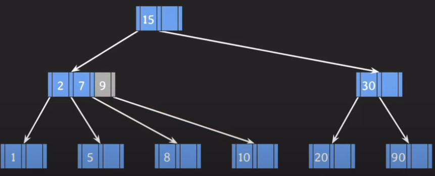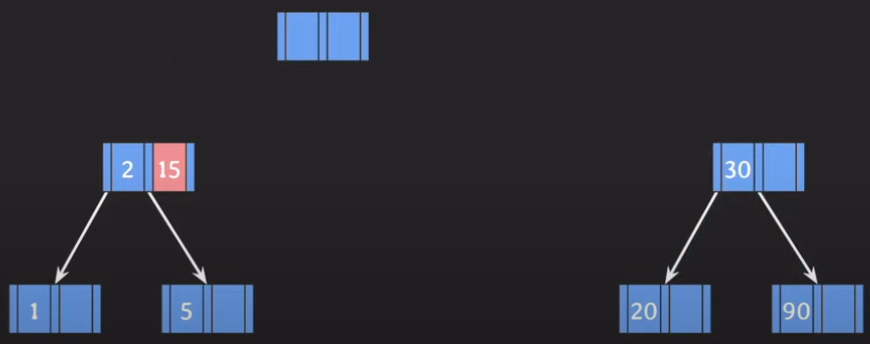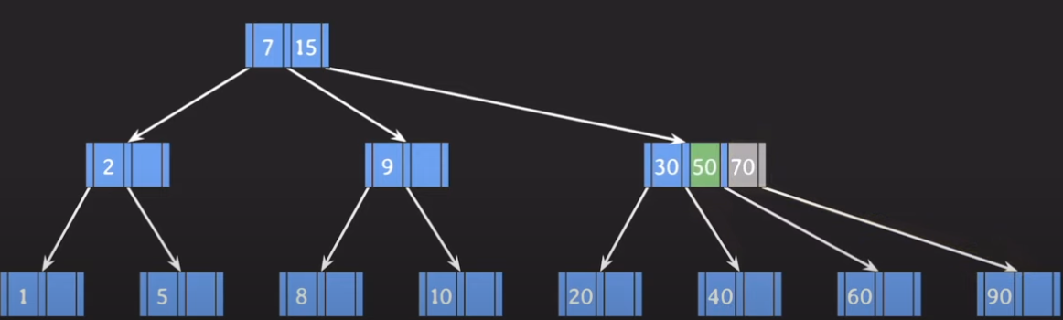 1. 부적절한 상태에 있는 노드가 발생할 경우 가운데 key값을 기준으로 분할하고 가운데 key는 부모노드로 올린다.