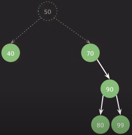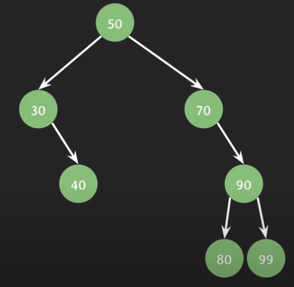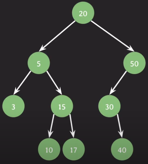 - 노드의 오른쪽 서브트리에는 그 노드의 값보다 큰 값들을 지닌 노드들로 이루어져 있다.