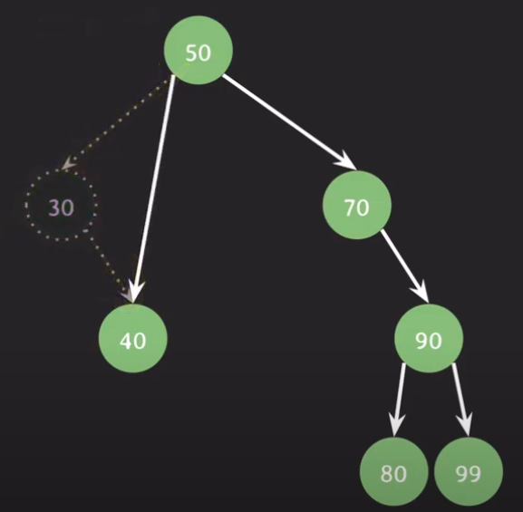 // 삭제할 노드가 왼쪽 자식을 가진 경우