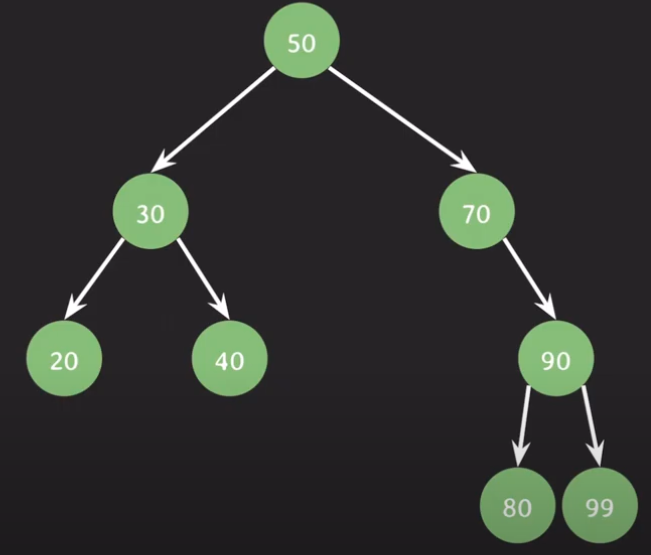 - 노드의 오른쪽 서브트리에는 그 노드의 값보다 큰 값들을 지닌 노드들로 이루어져 있다.