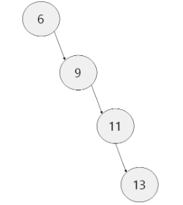 이진트리에서 데이터가 아래와 같이 한쪽으로 편향되어서 저장이 된다면, O(n) 시간복잡도가 걸린다.