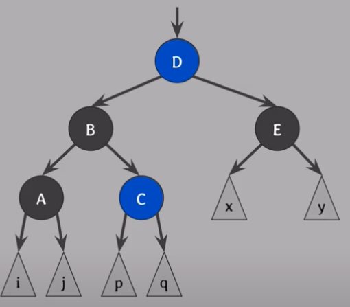 A와 B의 블랙 색상을 extra black으로 만들어 부모 노드로 올려 보내서 D를 레드로 만든다.