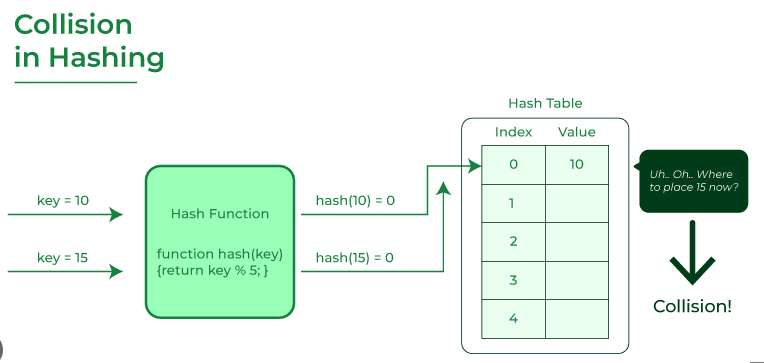 하지만 서로다른 입력에 대해서 해시함수는 중복되는 결과값을 반환 할 수도 있다.