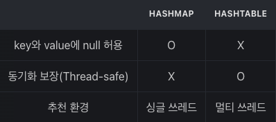 두 구현 클래스의 차이도 있겠지만 아래표로 간단하게 보고, 일단 Hash에 대해서 알아보자!