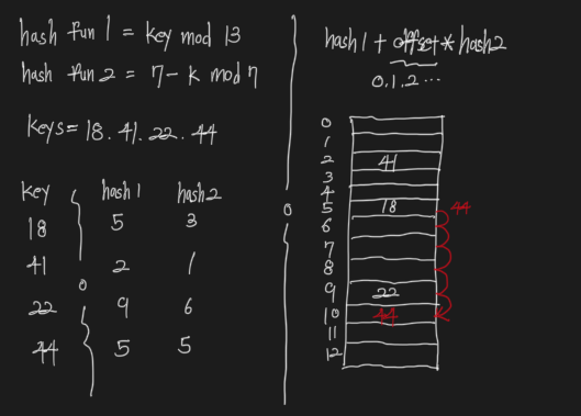 second hash function - 충돌 발생시 빈 슬롯을 찾기위해 얼마나 이동할지 구하기 위해 사용됩니다.