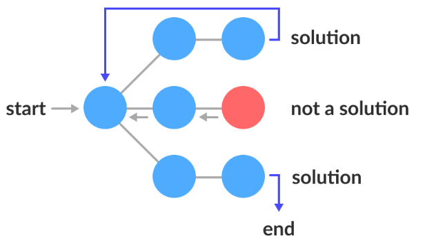 가능성이 있는 후보를 점진적으로 구축하고 후보가 특정 목표까지 완료될 수 없다고 판단하는 즉시 후보를 포기합니다("backtracking")
