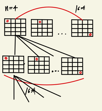 1개씩 퀸을 놓는다고 가정해보면, 일단 각 중복을 포함하여, 퀸마다 놓을수 있는 모든 경우의 수는 16개다