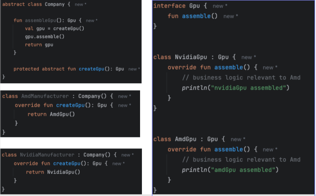 아래와 같이 Factory Method Pattern을 이용하여 구현된 Gpu를 생성하는 코드가 있다고 가정을 해보자!