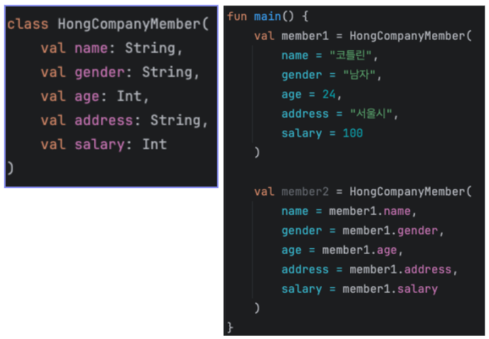 예를 들어 hong's company member 클래스의 객체를 복사해보자!