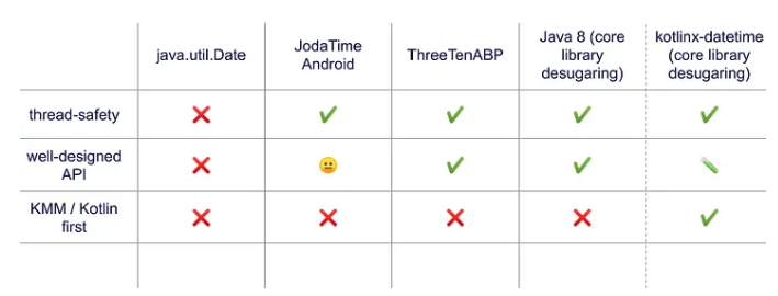 오래된 java.util.Date나 java.util.Calendar 보다는 Java 8의 java.time의 API 들인LocalDateTime , LocalDate , ZonedDateTime을 사용하는 것이 더 좋습니다. 하지만, MinimumSdkVersion에 따라 사용하지 못할 수 있습니다.
