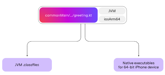 예를 들어, 컴파일러는 동일한 Kotlin 파일에서 JVM .class 파일과 네이티브 실행 파일을 생성할 수 있습니다.
