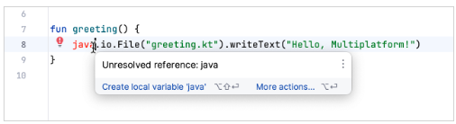 java.io.File("greeting.txt").writeText("Hello, Multiplatform!")