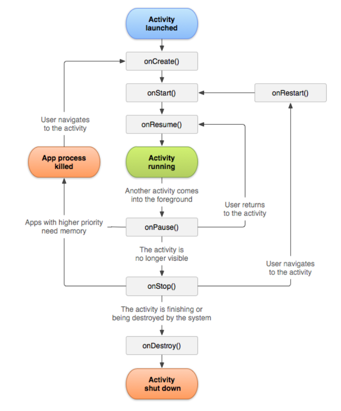 Activity클래스는 Activity 이 상태 변화를 알아차릴 수 있는 여러 콜백을 제공합니다.