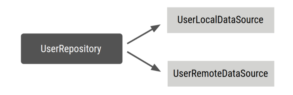 - UserRepository생성을 위해서는 종속 항목은 UserLocalDataSource 및 UserRemoteDataSource임을 알려줍니다.