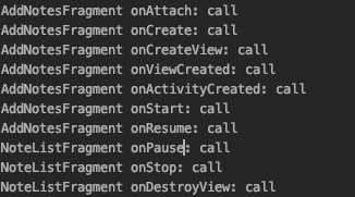 - 이전 NoteListFragment의 onPause onStop onDestroyView 까지 호출된다.