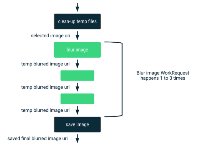 체인의 또 다른 멋진 기능은 하나의 WorkRequest의 출력이 다음 WorkRequest의 입력이된다는 것입니다