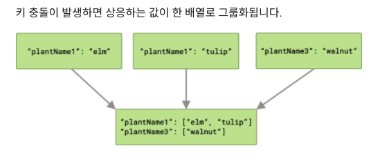 키 충돌 가능성이 있고 병합에서 모든 출력 데이터를 유지해야 한다면 ArrayCreatingInputMerger를 사용한다.