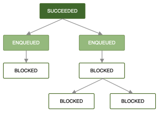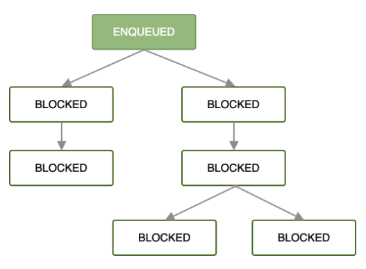 제약조건및 지연 타이밍이 만족되면 최상위 작업의 상태가 ENQUEUED 상태면 하위 작업들은 전부 BLOCKED 상태이다.